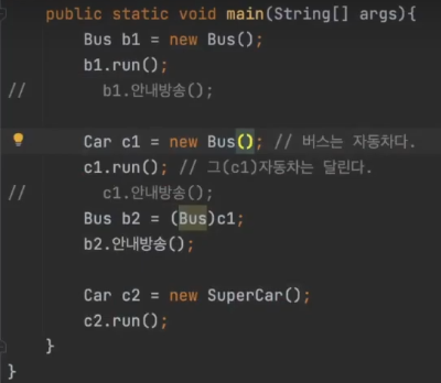 기능들의 목록을 가지고 있는 것: 무슨 기능을 만들어야 할 지 메서드에 대한 선언만을 가지고 있다. 즉, 규칙을 잡거나, 플로우 로직을 잡는데 사용한다. 객체의 사용 방법을 정의한 타입이다. 객체의 교환성을 높여주기 때문에 Upper CamelCase로 작성된다. 확장자가 .java파일로 작성한다. 모든 필드는 public static final이어야 하며, 모든 메서드는 public abstract이어야 한다. (Java 7까지는) final, abstract를 생략하면 자동으로 붙는다. Java 8 부터는 default 메서드(구현된 메서드)와 static 메서드도 선언이 가능하다. 인터페이스의 default 메서드: JDK 8에 추가된 메서드 default 메서드가 인터페이스에 추가된 이유에 대해 ..