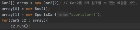 기능들의 목록을 가지고 있는 것: 무슨 기능을 만들어야 할 지 메서드에 대한 선언만을 가지고 있다. 즉, 규칙을 잡거나, 플로우 로직을 잡는데 사용한다. 객체의 사용 방법을 정의한 타입이다. 객체의 교환성을 높여주기 때문에 Upper CamelCase로 작성된다. 확장자가 .java파일로 작성한다. 모든 필드는 public static final이어야 하며, 모든 메서드는 public abstract이어야 한다. (Java 7까지는) final, abstract를 생략하면 자동으로 붙는다. Java 8 부터는 default 메서드(구현된 메서드)와 static 메서드도 선언이 가능하다. 인터페이스의 default 메서드: JDK 8에 추가된 메서드 default 메서드가 인터페이스에 추가된 이유에 대해 ..
